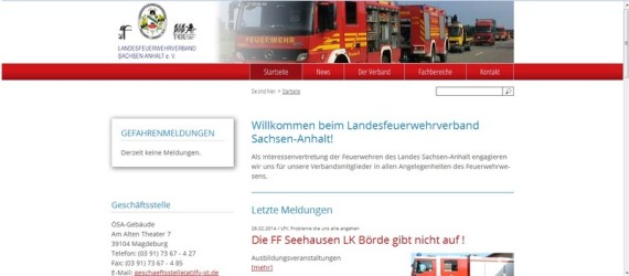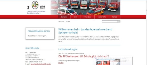 Die Feuerwehr Osterweddingen als Titelbild vom Internetauftritt des Landesfeuerwehrverband Sachsen-Anhalt