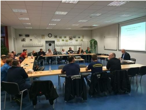 Dozent Hartmut Jaaks (rechts) schulte die Feuerwehrleute des Sülzetals im Gerätehaus Osterweddingen. Foto: privat