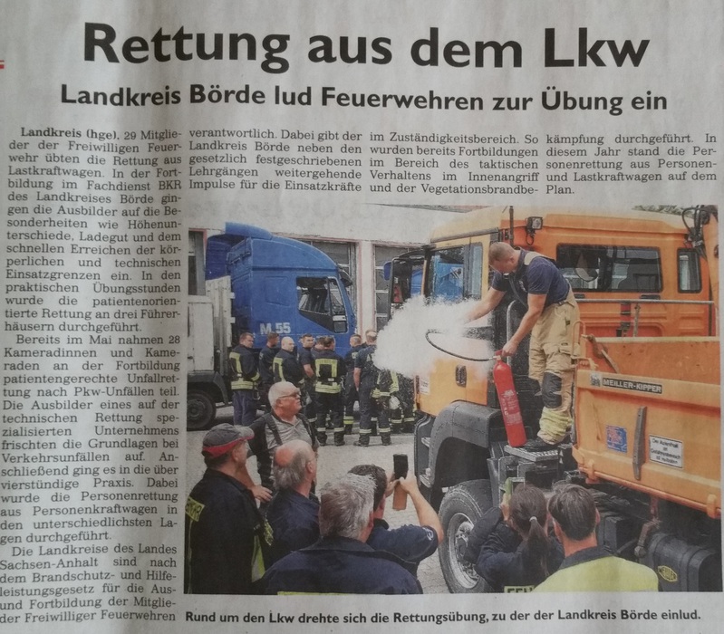 man zur Personenrettung aus Lkw vorgeht, haben jetzt 29 Feuerwehrleute aus dem Landkreis in Haldensleben trainiert. Foto: privat