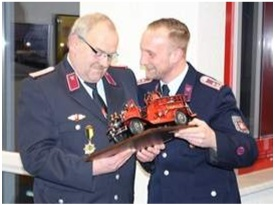 Dieter Krüger wurde für seine besonderen Verdienste zur Förderung des Brandschutzes der Titel „Ehrenwehrleiter der Freiwilligen Feuerwehr Sülzetal“ verliehen. Glückwünsche und Präsente übergaben die Gemeinde Sülzetal, die Führungsspitze der Feuerwehr sowie die Osterweddinger Kameraden. Mit einem Imbiss und angeregten Gesprächen klang der Sonnabend entspannt aus.